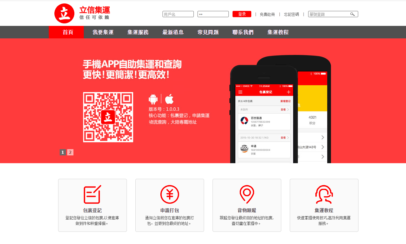 立信集運是專注于傢私家具大貨集運小件本地派送等運輸的服務平台。主要業務範圍包括:傢私家具集運、小貨集運,所有貨品可一起集運,不限貨品轉運,安全到港,方便快捷,于2008年在東莞虎門貨運區以及香港行內商圈服務至今,十年專注香港集運.良好的口碑。積累了大量香港客戶。並一直致力於香港集運,讓立信走進香港淘友的心中。