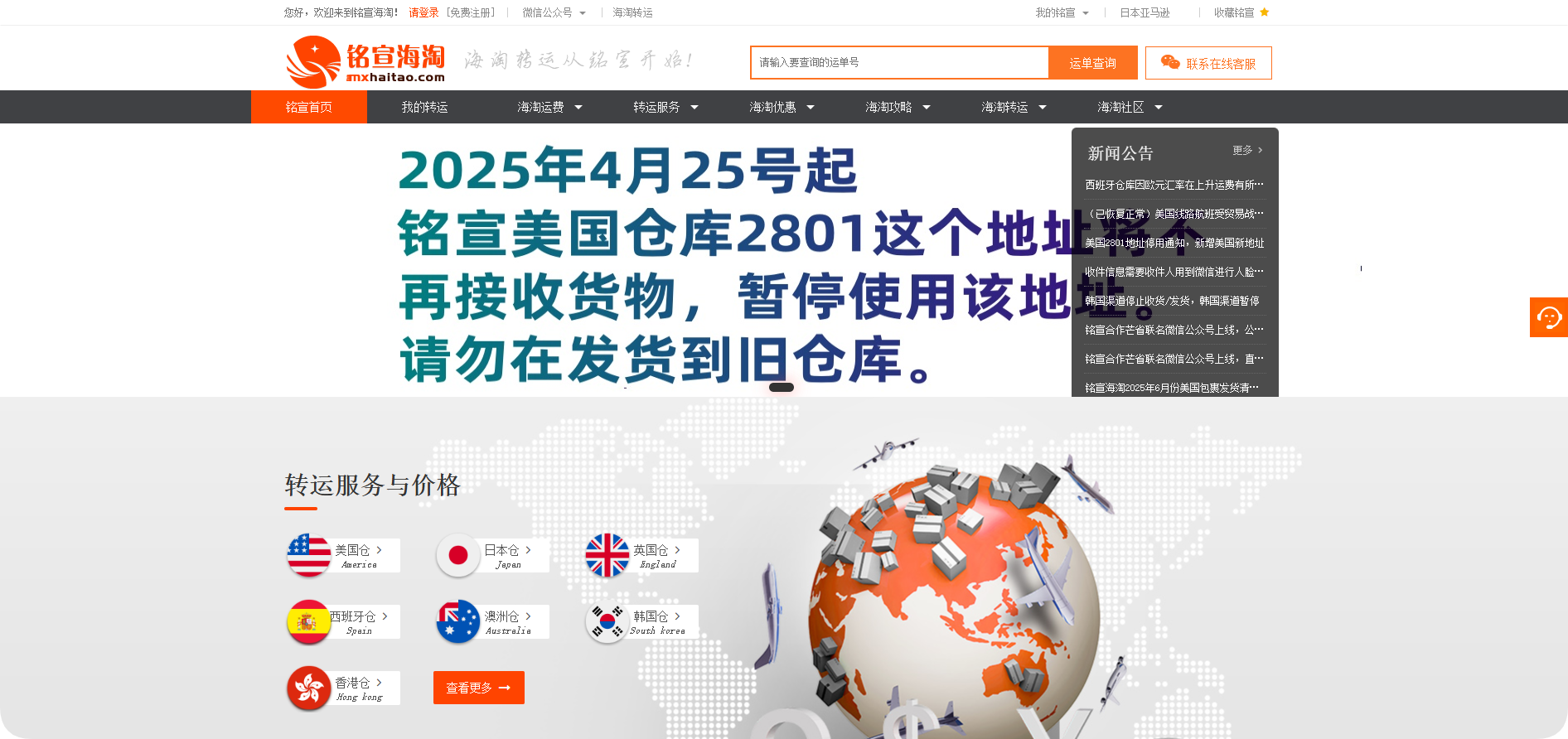 铭宣海淘作为经营多年海淘转运公司,专注于海淘转运服务,致力于提供快速、安全、便捷、实惠的国际物流转运业务,目前开通有美国转运、日本转运、澳洲转运、英国转运、西班牙转运、丹麦转运、加拿大转运等全球多个国家海淘转运路线。