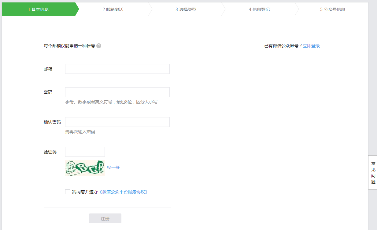 申请对应的公众号 :