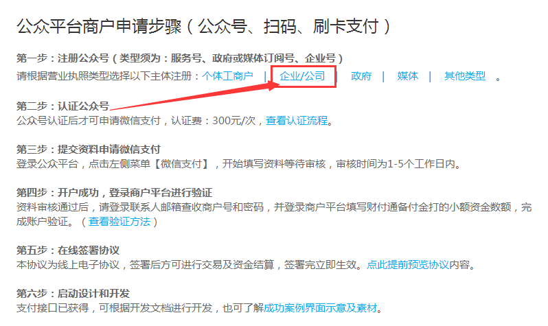 1. 微信支付首先需要申请企业“服务公众号”:https://mp.weixin.qq.com/cgi-bin/registermidpage?action=index&lang=zh_CN