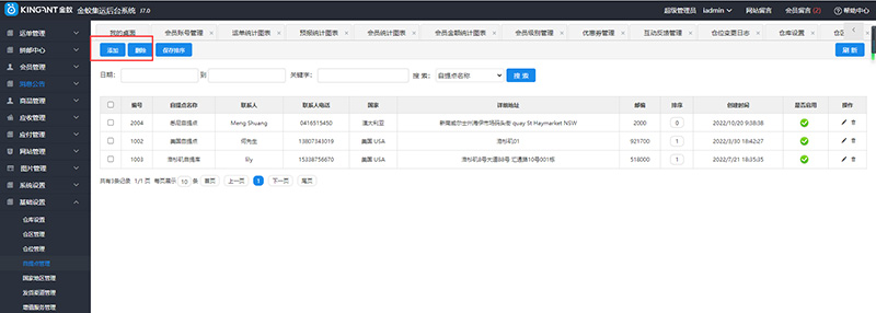 集运系统管理端教程6:如何添加仓库、仓区、仓位?