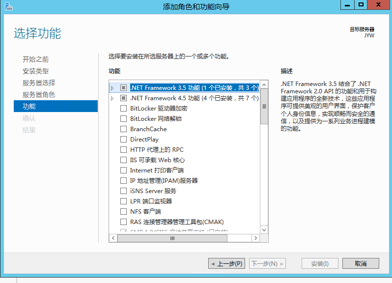 如果默认登录后是显示服务器管理器,则直接添加功能
