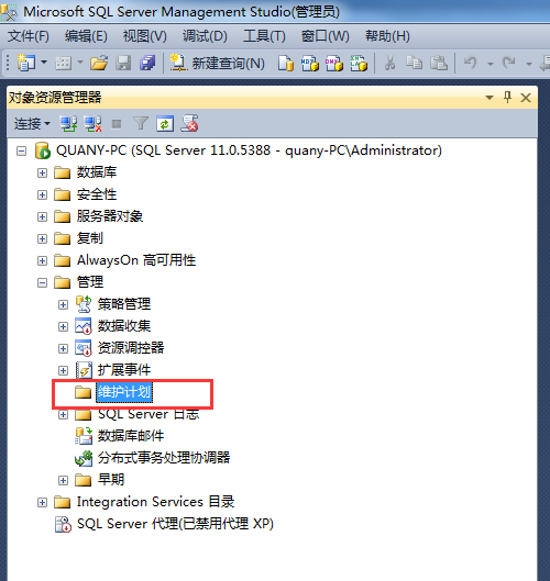 找到管理里的维护计划,然后点击右键开始维护向导