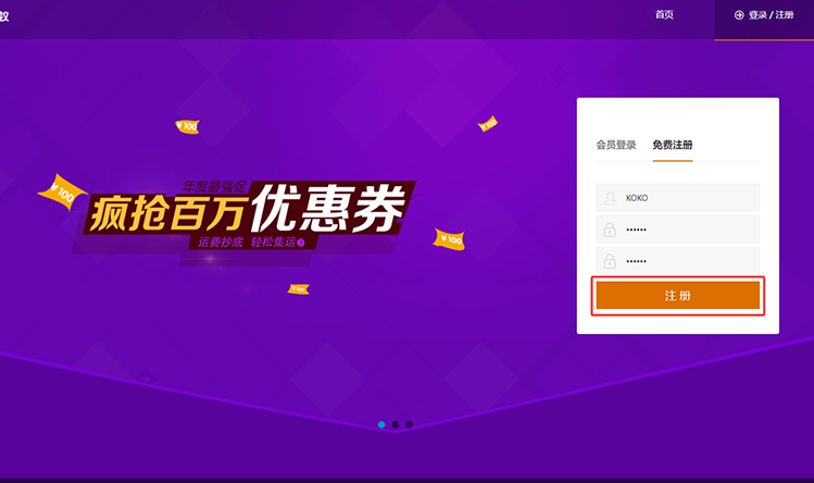 第2步:输入代购集运系统会员登录注册网址,可以打开会员注册页面。操作界面,如下图: