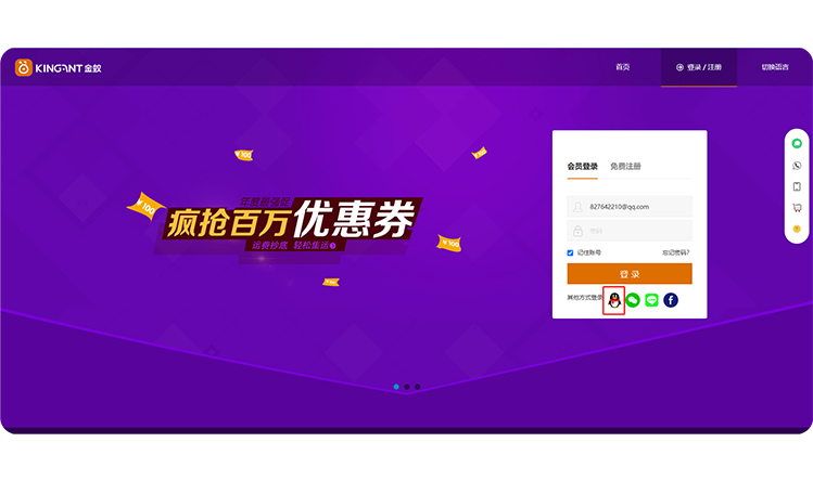 新客户注册账号后,可以在会员端绑定自己的QQ账号。从第二次开始登录时,在登录页面,直接点击登“QQ”图标,一键登录代购集运的会员中心。
