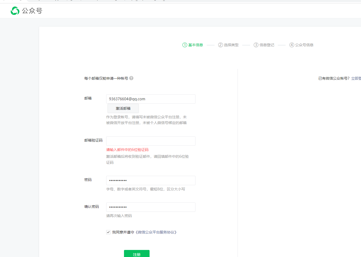 公众号注册