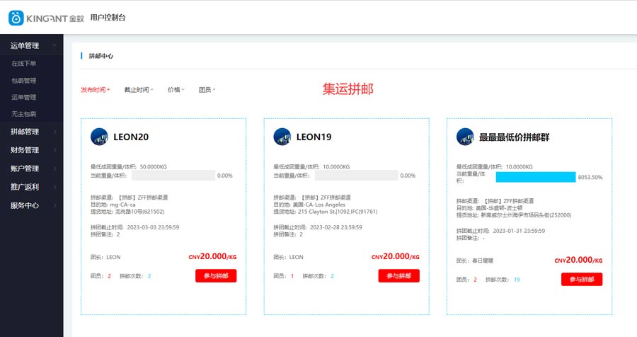 前提是转/集运商有拼邮的业务,转/集运系统上也有拼邮团运的功能。