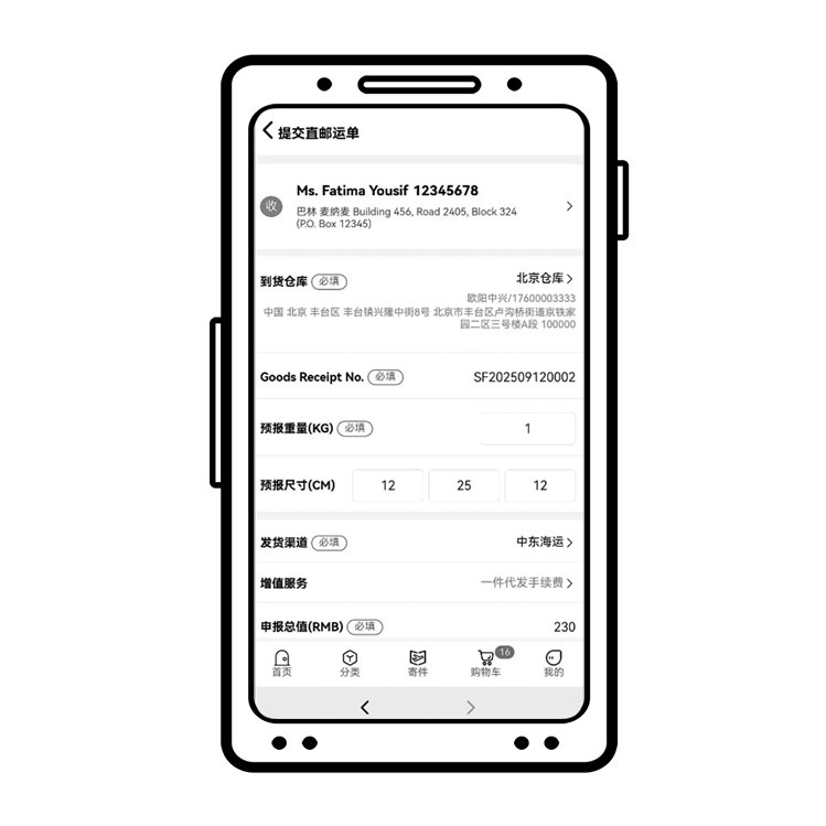 PC会员端 & 移动端:在提交直邮运单的页面,现支持手动输入“入库重量”,系统将实时计算并显示“运费预估”,帮助您更精准地掌握运输成本。