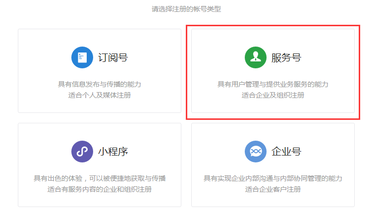 1. 微信支付首先需要申请企业“服务公众号”:https://mp.weixin.qq.com/cgi-bin/registermidpage?action=index&lang=zh_CN
