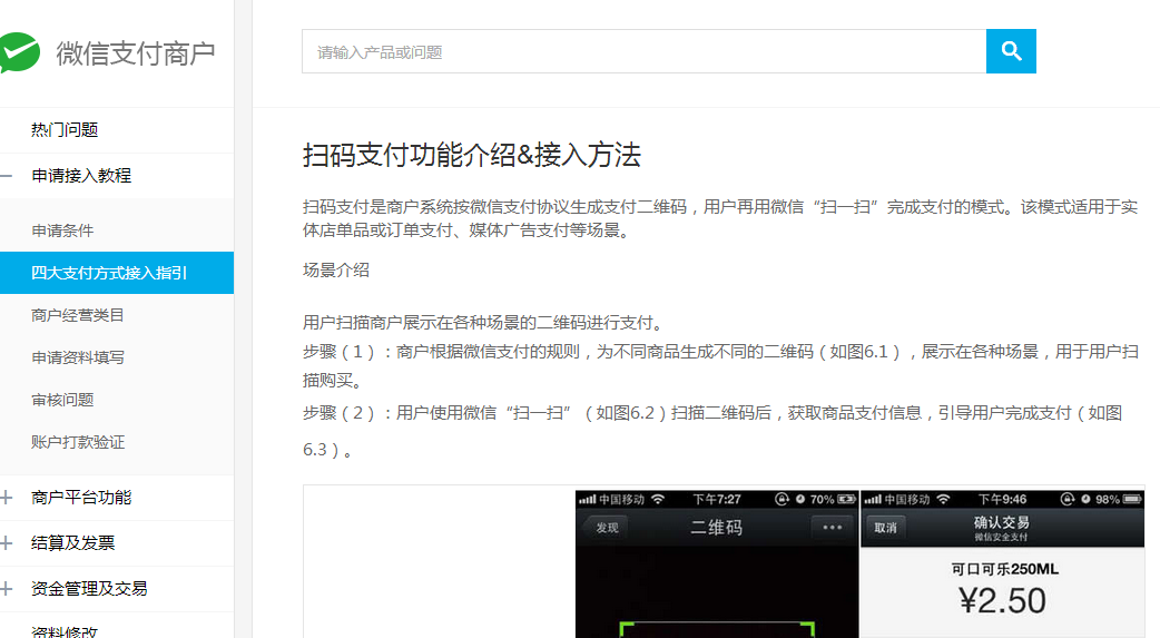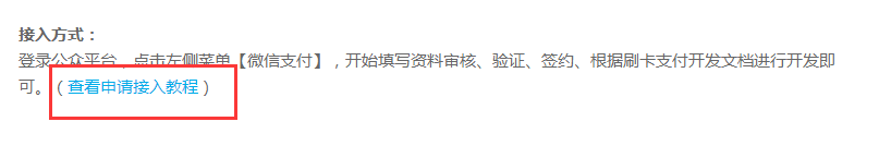 点击扫码支付链接页面如下,拉到底部查看申请教程
