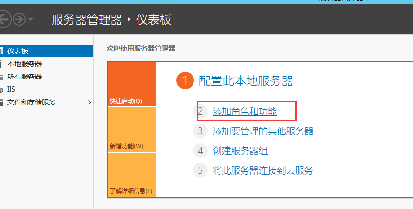 如果默认登录后是显示服务器管理器,则直接添加功能
