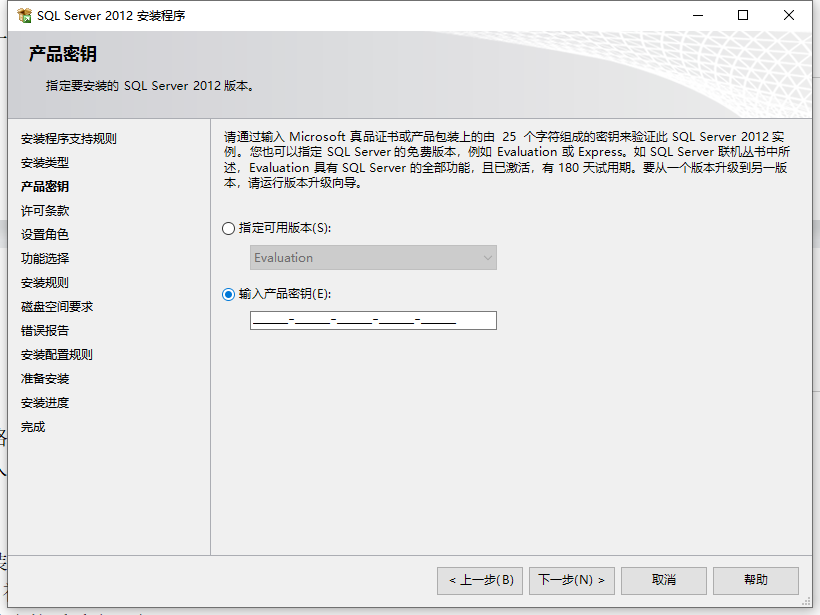 输入产品秘钥这里,标准版的秘钥即可。