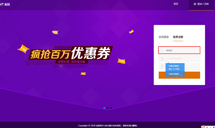 第2步:输入代购集运系统会员登录注册网址,可以打开会员注册页面。操作界面,如下图: