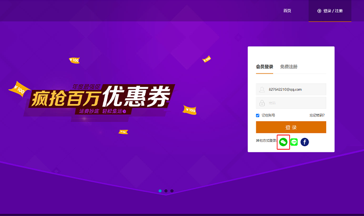 场景:新客户注册账号后,可以在会员端绑定自己的微信账号。从第二次开始登录时,直接点击“微信”图标,一键登录代购集运的会员中心。