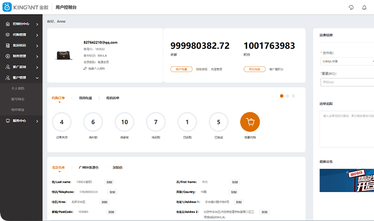 第一步:登录代购集运系统的会员中心。操作界面,如下图: